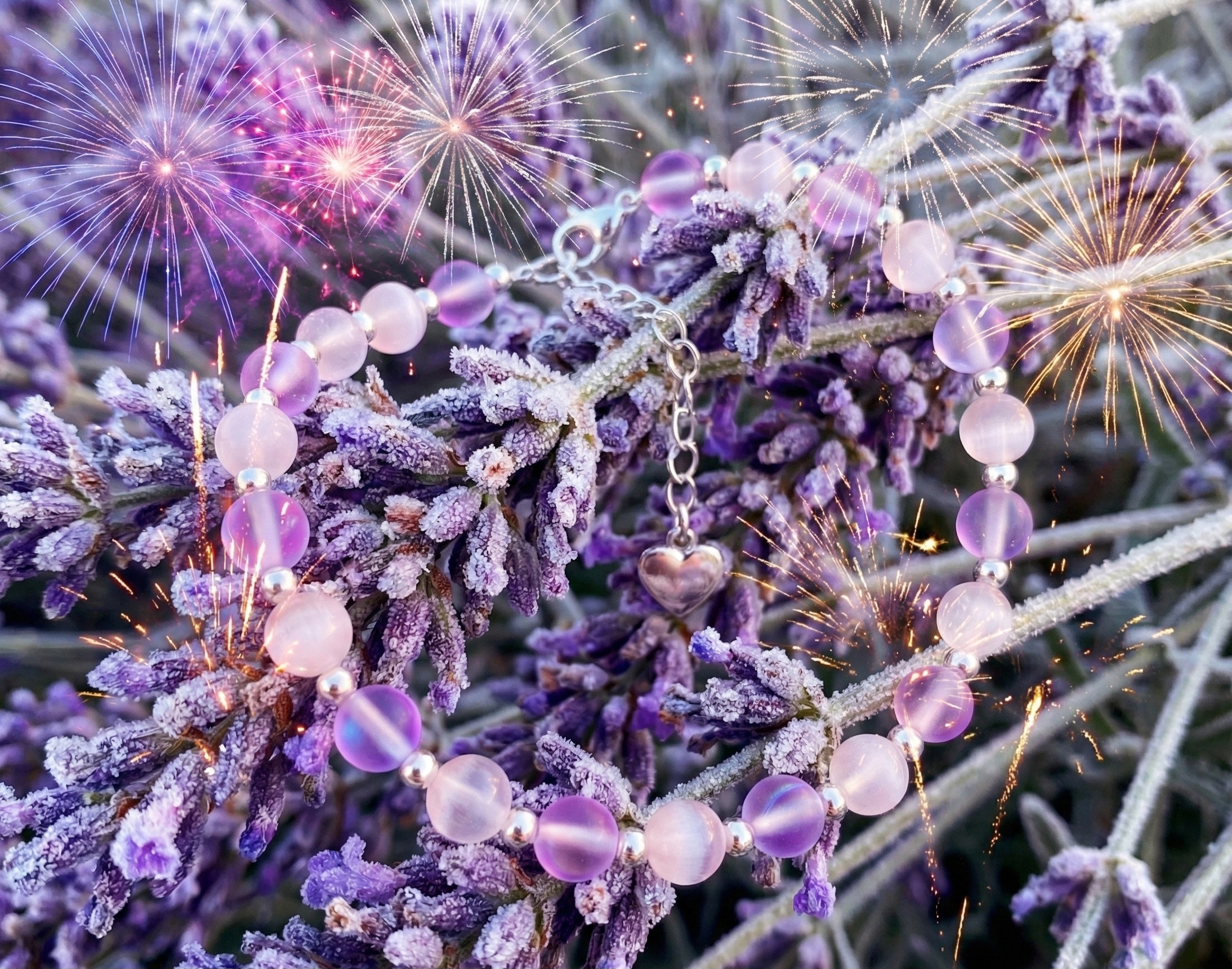 Dodaj swojej zimowej stylizacji odrobinę mroźnej elegancji. Bransoletka ,,Lawendowy Szron" to wyrafinowane połączenie chłodnych pasteli i głębokiego fioletu, stworzone z myślą o wyjątkowych okazjach tego sezonu.