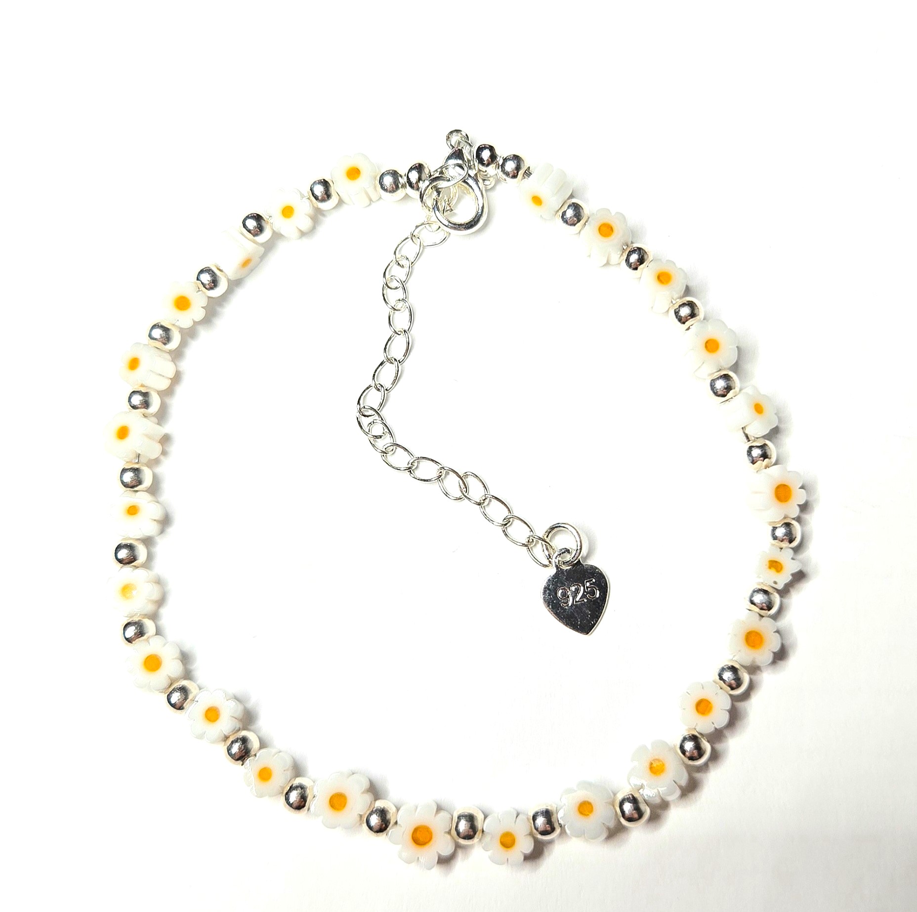 BRANSOLETKA ,,MARGARETKI"ZE SREBRA I KORALIKÓW AKRYLOWYCH