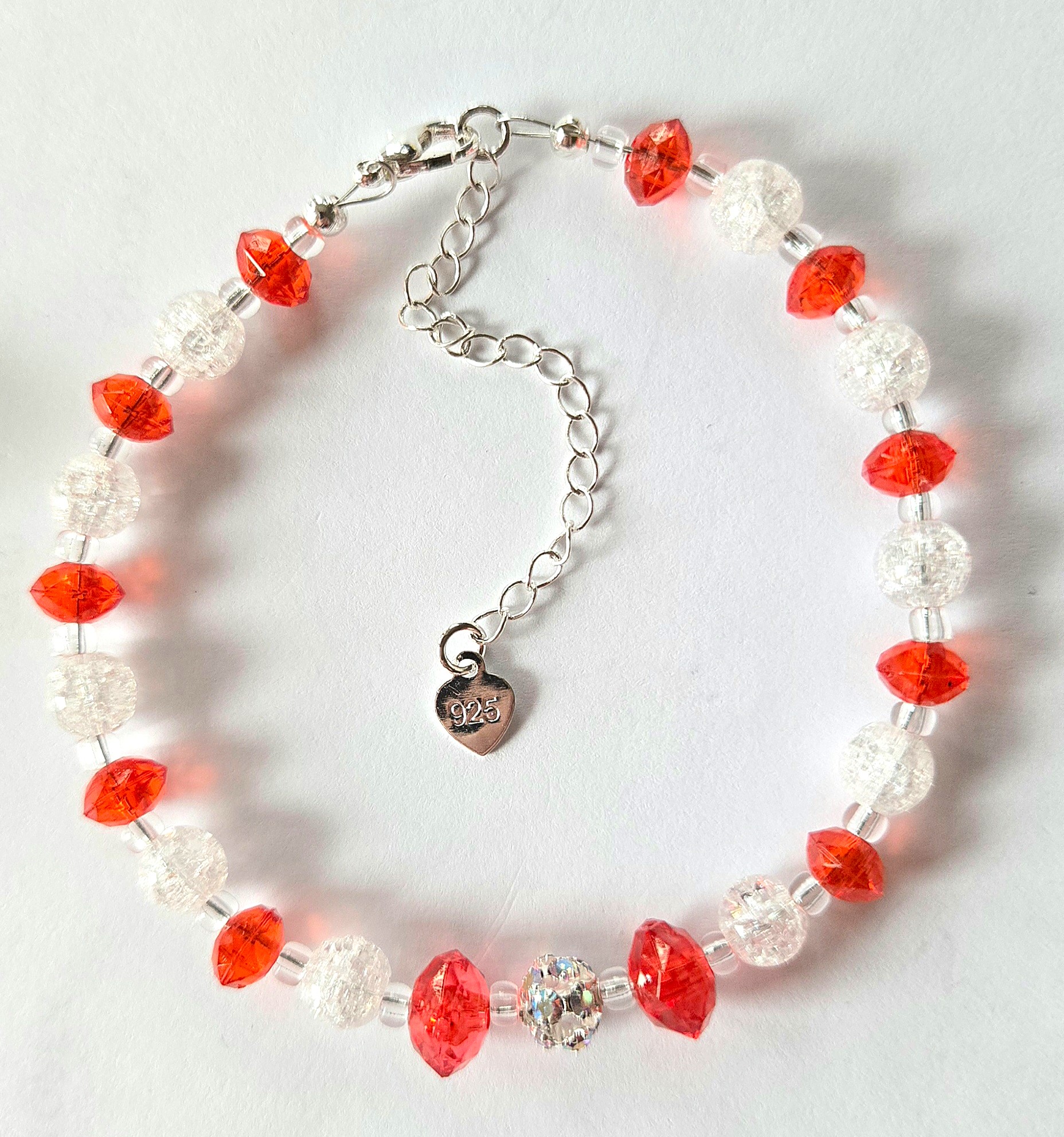 BRANSOLETKA ,,OGIEŃ I LÓD" ZE SREBRA I KORALIKÓW AKRYLOWYCH