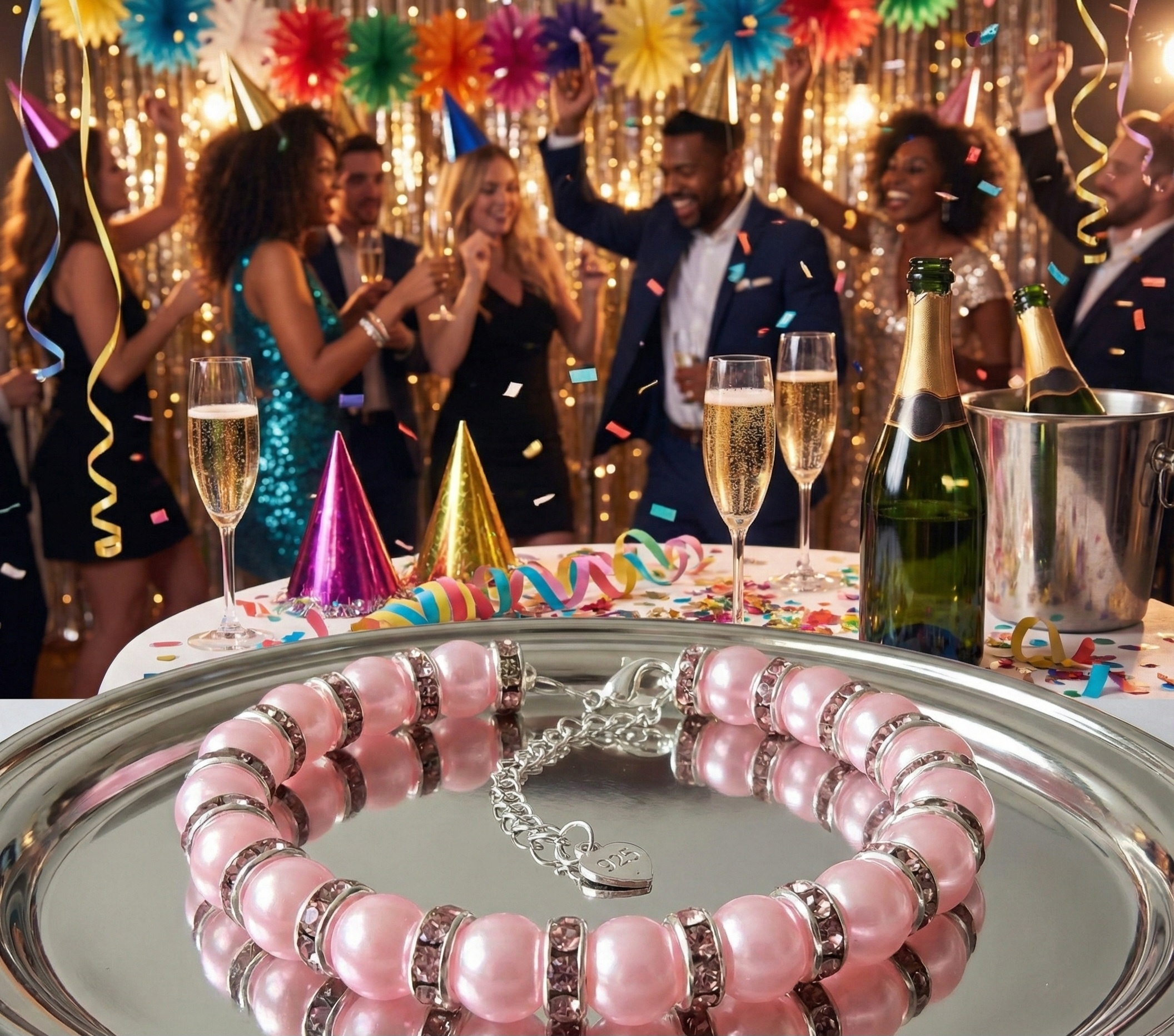 Gotowa, by zabłysnąć na parkiecie? Bransoletka ,,Pink Glamour" to kwintesencja karnawałowego szaleństwa w najbardziej kobiecym wydaniu. To biżuteria, która prosi o uwagę - ona ja zdobywa od pierwszego wejrzenia.