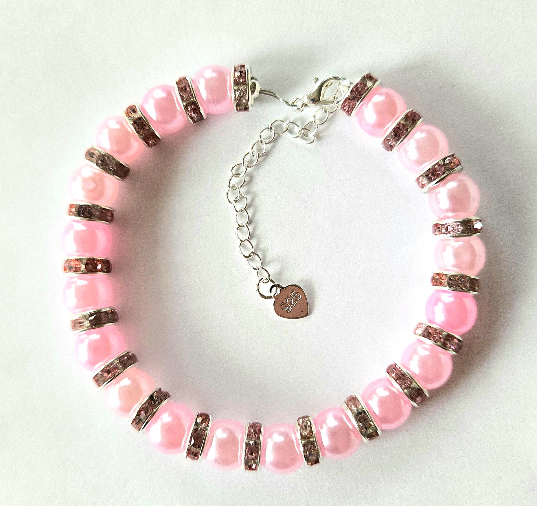 BRANSOLETKA ,,PINK GLAMOUR" Z KORALIKÓW AKRYLOWYCH I SREBRA