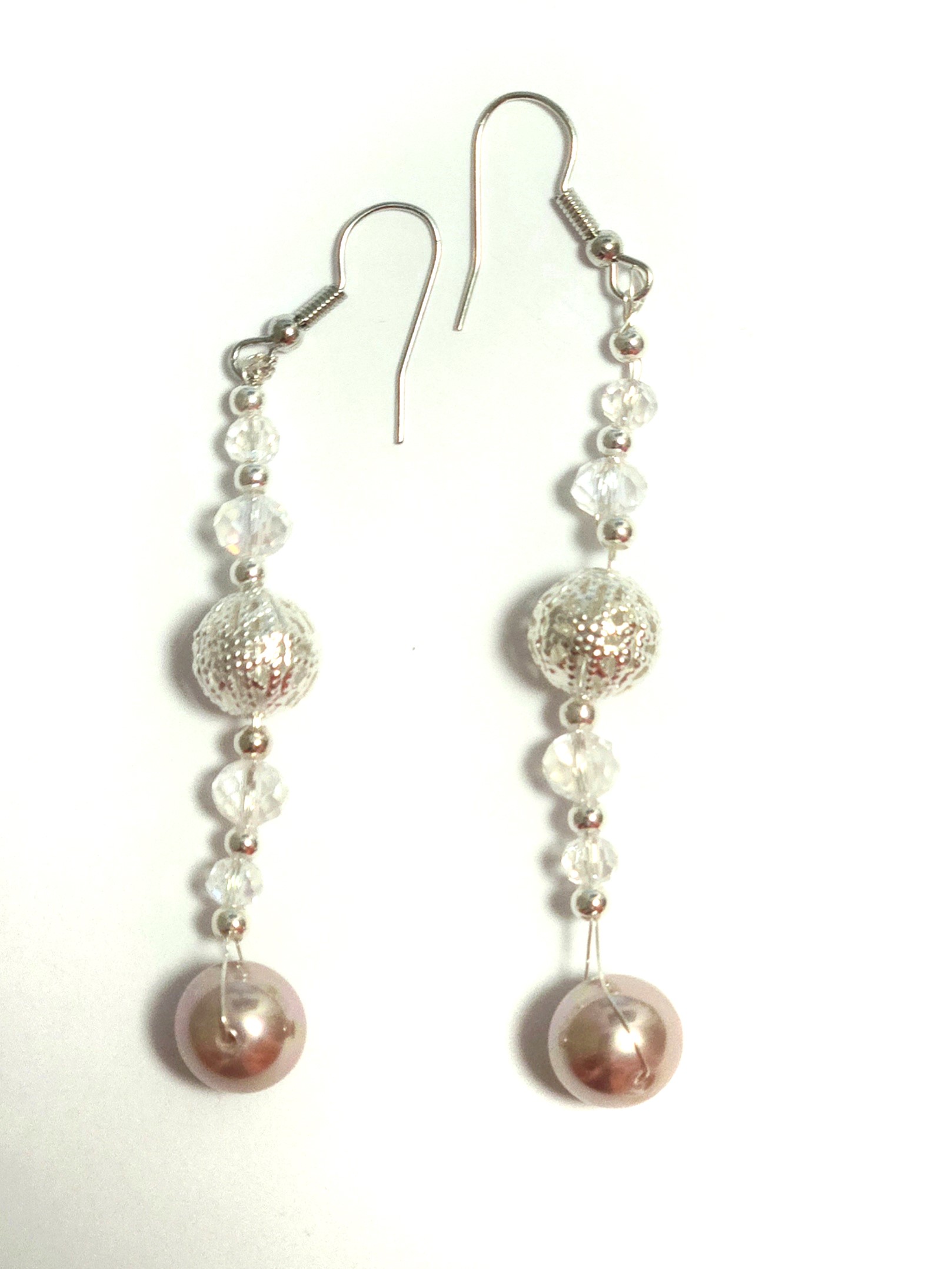 KOLCZYKI ,,KASZTANOWA ETIUDA" PERŁY, SREBRO I KRYSZTAŁ GÓRSKI