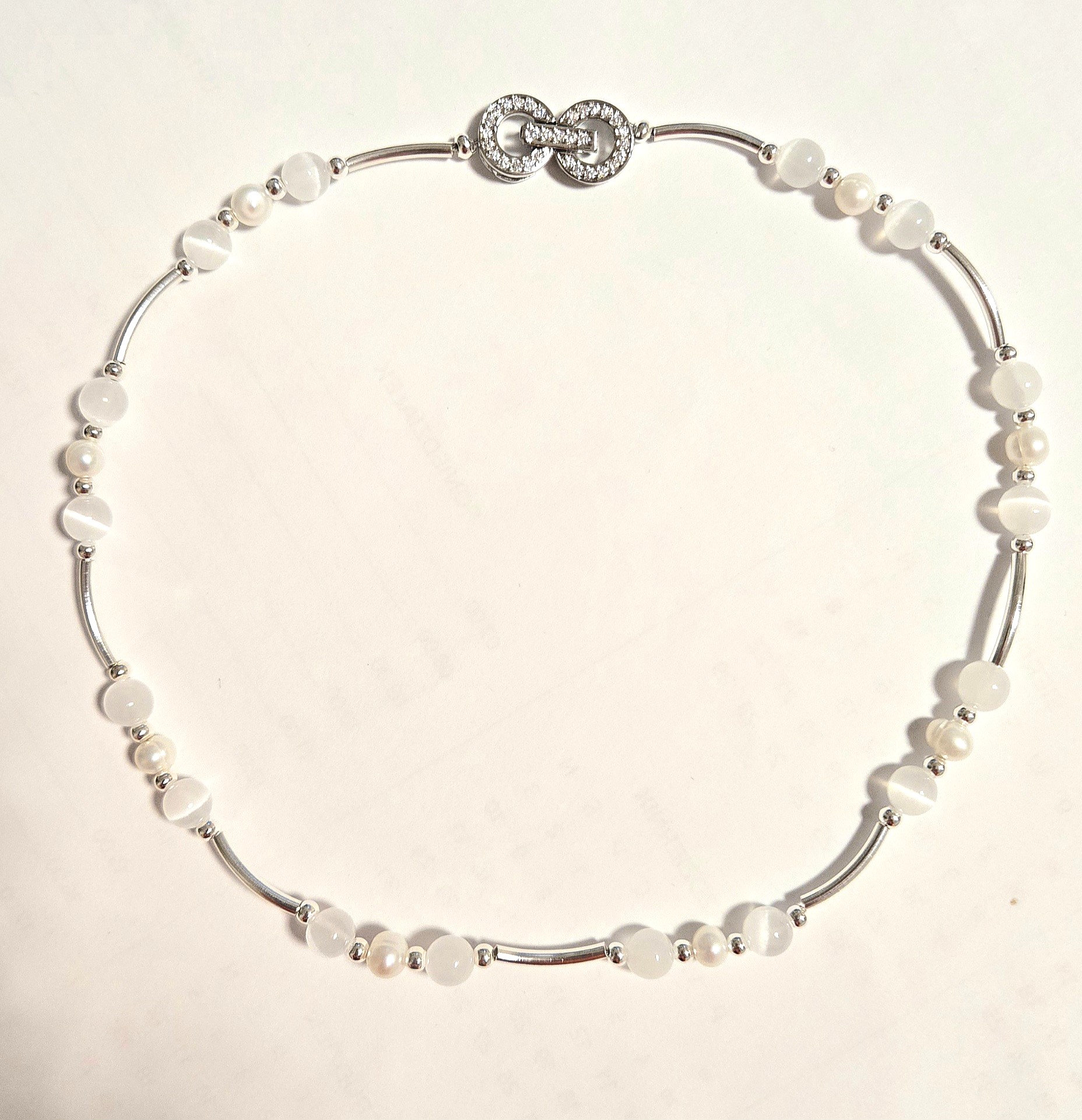 NASZYJNIK Z PEREŁ, KAMIENIA KSIĘŻYCOWEGO I SREBRA