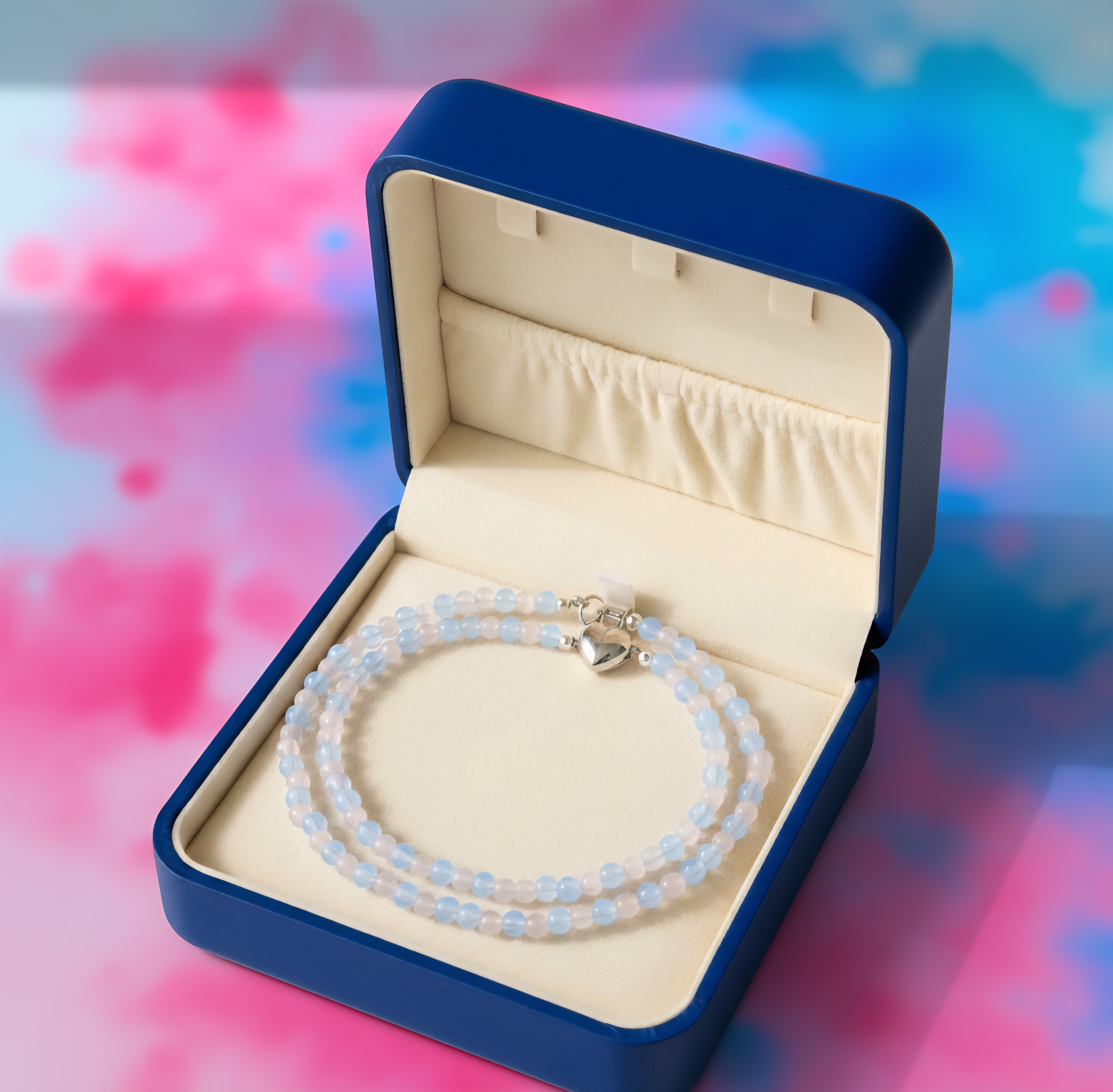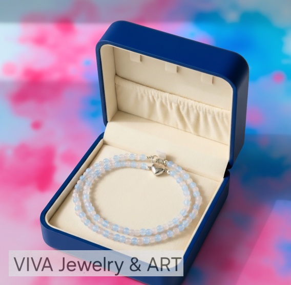 Odkryj niezwykłe piękno i delikatność z naszym najnowszym naszyjnikiem „Harmonia Odcieni”, stworzonym z kamieni kocie oko w hipnotyzujących odcieniach błękitu i różu. Ta subtelna biżuteria to kwintesencja elegancji i spokoju, idealna dla każdej kobiety ceniącej sobie unikalne dodatki.