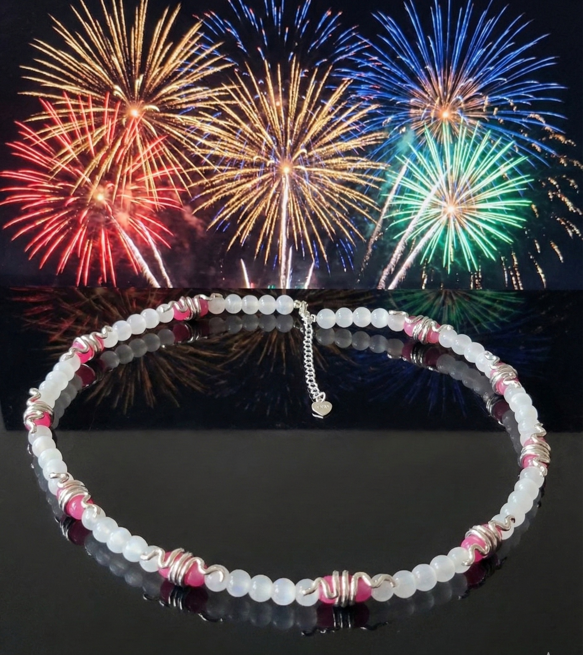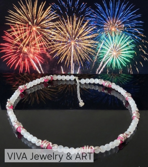 To naszyjnik stworzony na wyjątkowe chwile. Będzie idealnym, pełnym symboliki dodatkiem do zimowego ślubu - kamień księżycowy patronuje nowym początkom, a angelit miłości i opiece. Kilka dni później, podczas nocy sylwestrowej, jego srebrny blask doskonale odbije światła fajerwerków, dodając Twojej kreacji szczypty magii podczas powitania Nowego Roku.