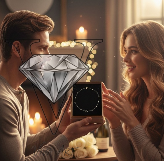 Cyrkonia, imitująca diament, jest symbolem blasku, czystości i wiecznego piękna. Jej migotliwy blask symbolizuje ,,intensywne," momenty w miłości, te chwile, w których uczucie olśniewa i zapiera dech w piersiach. Złoto od wieków jest symbolem bogactwa, luksusu i boskości. Pokrycie srebra 18 - karatowym złotem oznacza nadanie tej więzi najwyższej wartości i ciepła. Srebrna podstawa i złota powłoka symbolizuje fakt, że prawdziwa miłość to połączenie praktycznej, mocnej więzi z idealnym, świetlistym ideałem, jakim jest złoto.