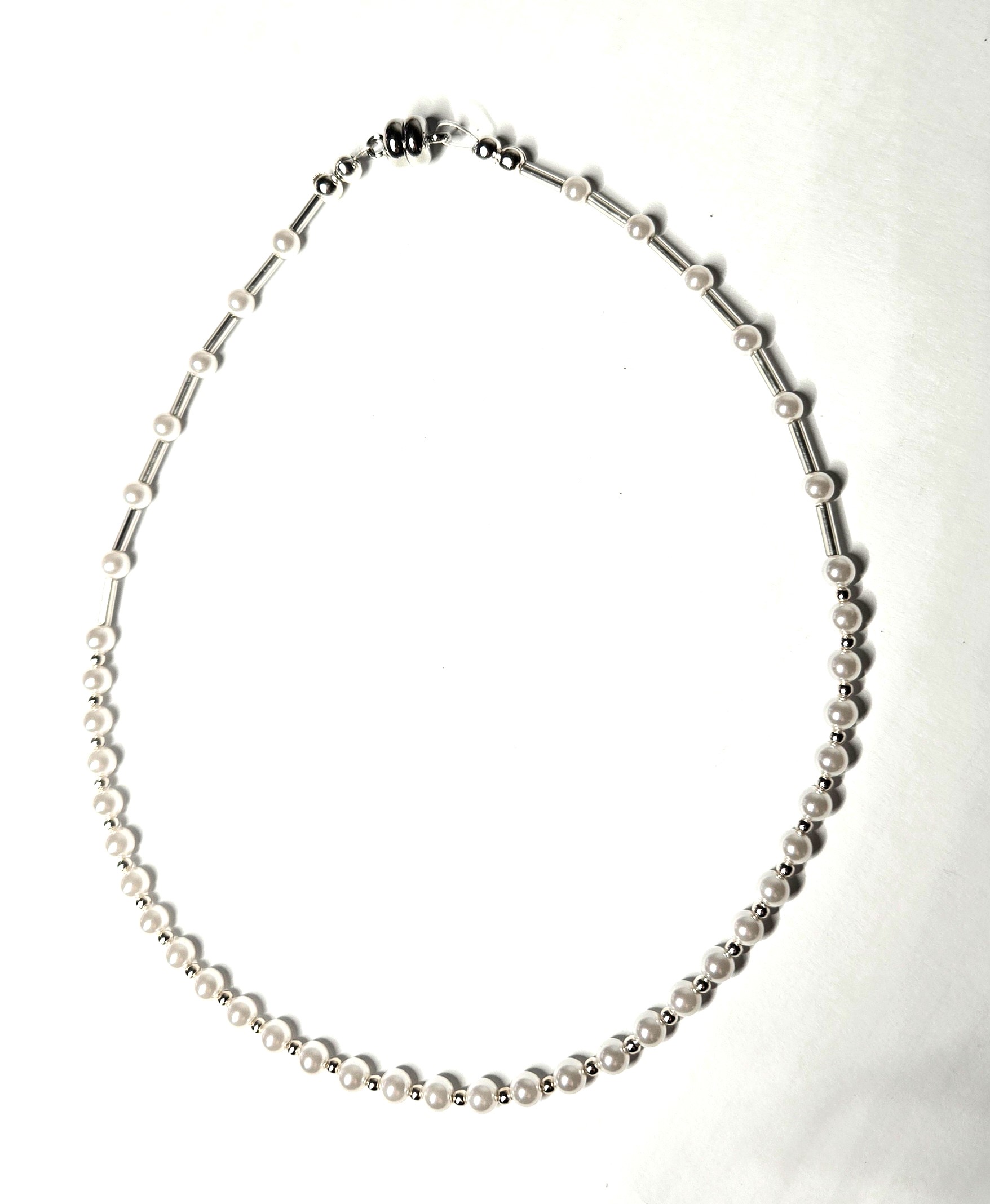 Dolna partia naszyjnika charaktryzuje się układem drobnych, idealnie okrągłych pereł, przedzielonych srebrnymi kuleczkami. Ta symetria symblizuje harmonię i zjednoczenie dusz w węźle małżeńskim.